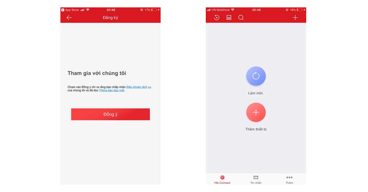 Bước 1: Mở ứng dụng Hik-Connect trên điện thoại.