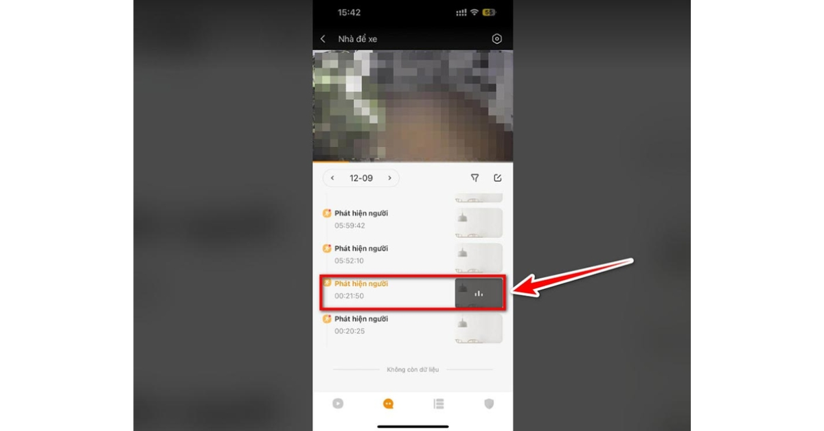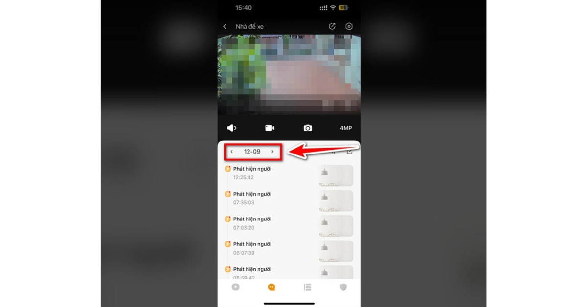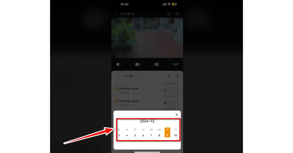Bước 4: Chọn ngày và giờ bạn cần. Thanh thời gian sẽ hiển thị các đoạn video đã lưu trữ. Nhấn vào để xem.