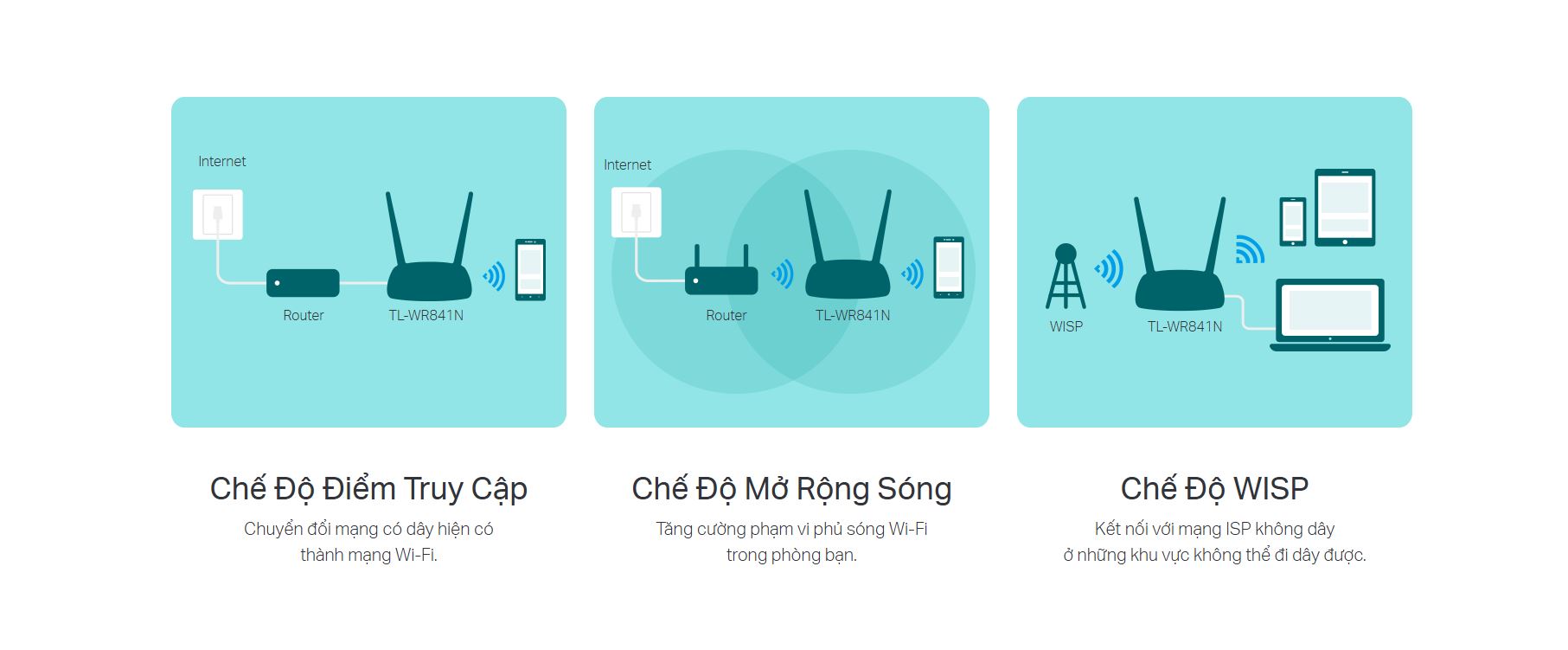 | Working Modes | Router Wi-Fi, Mở rộng sóng, Điểm truy cập, WISP |