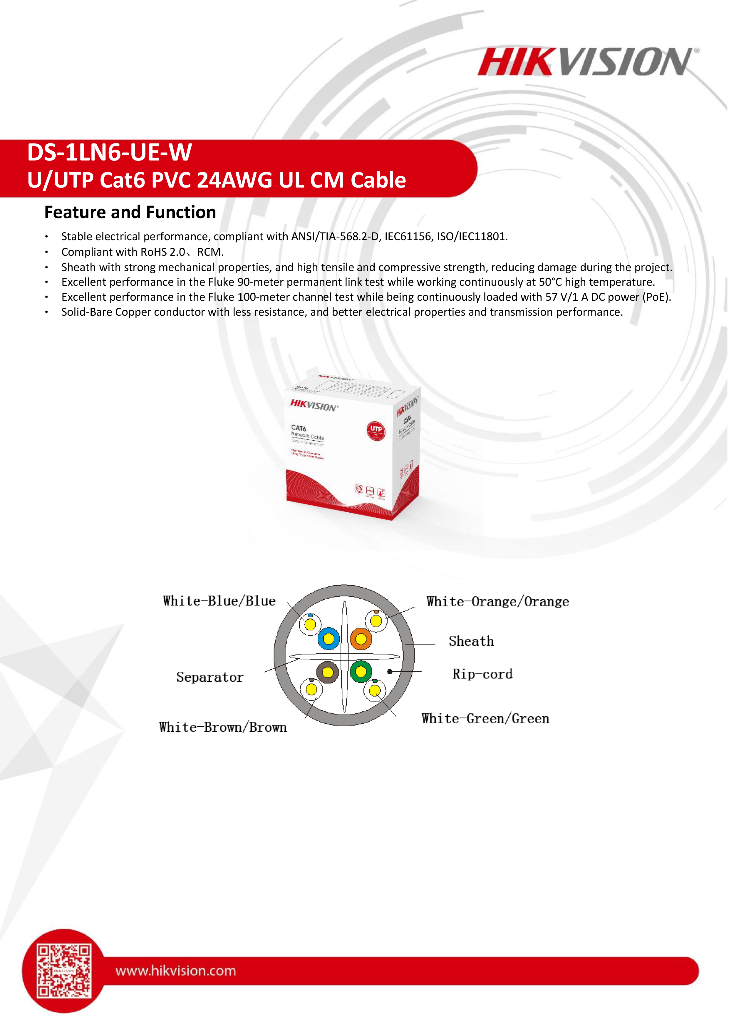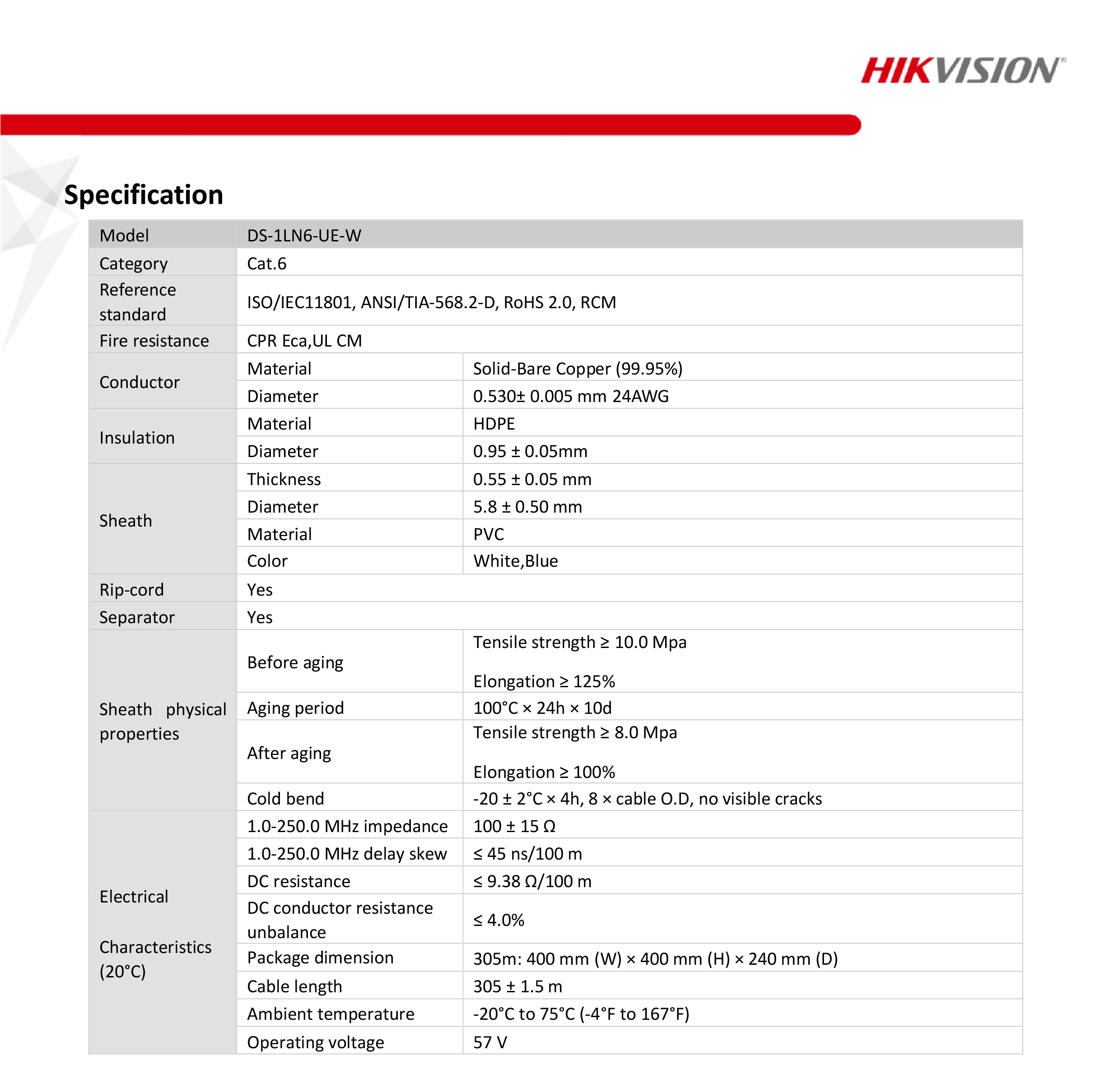 Cáp mạng CAT6 UTP 305 m hikvision DS-1LN6-UE-W (Solid Copper, 0.53 mm, CM)