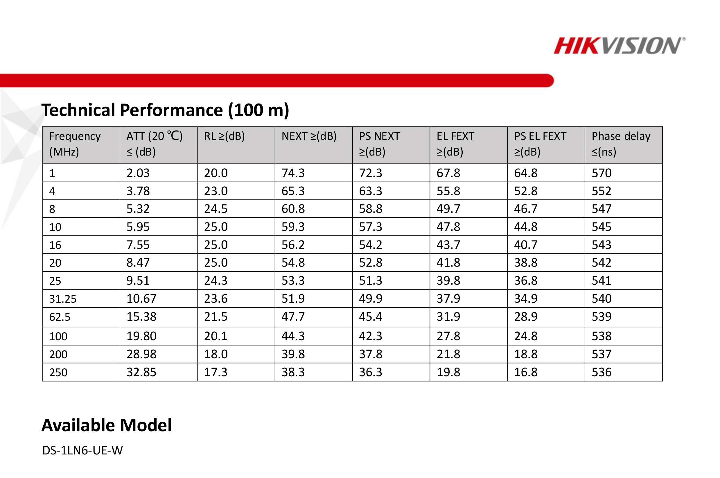 Trở kháng (1.0-250.0MHz): 100 ± 15 Ω Độ trễ lệch (1.0-250.0MHz): ≤45 ns/100m Điện trở DC: ≤ 9.38 Ω/100m Sai lệch điện trở DC giữa các lõi: ≤ 5.0% |