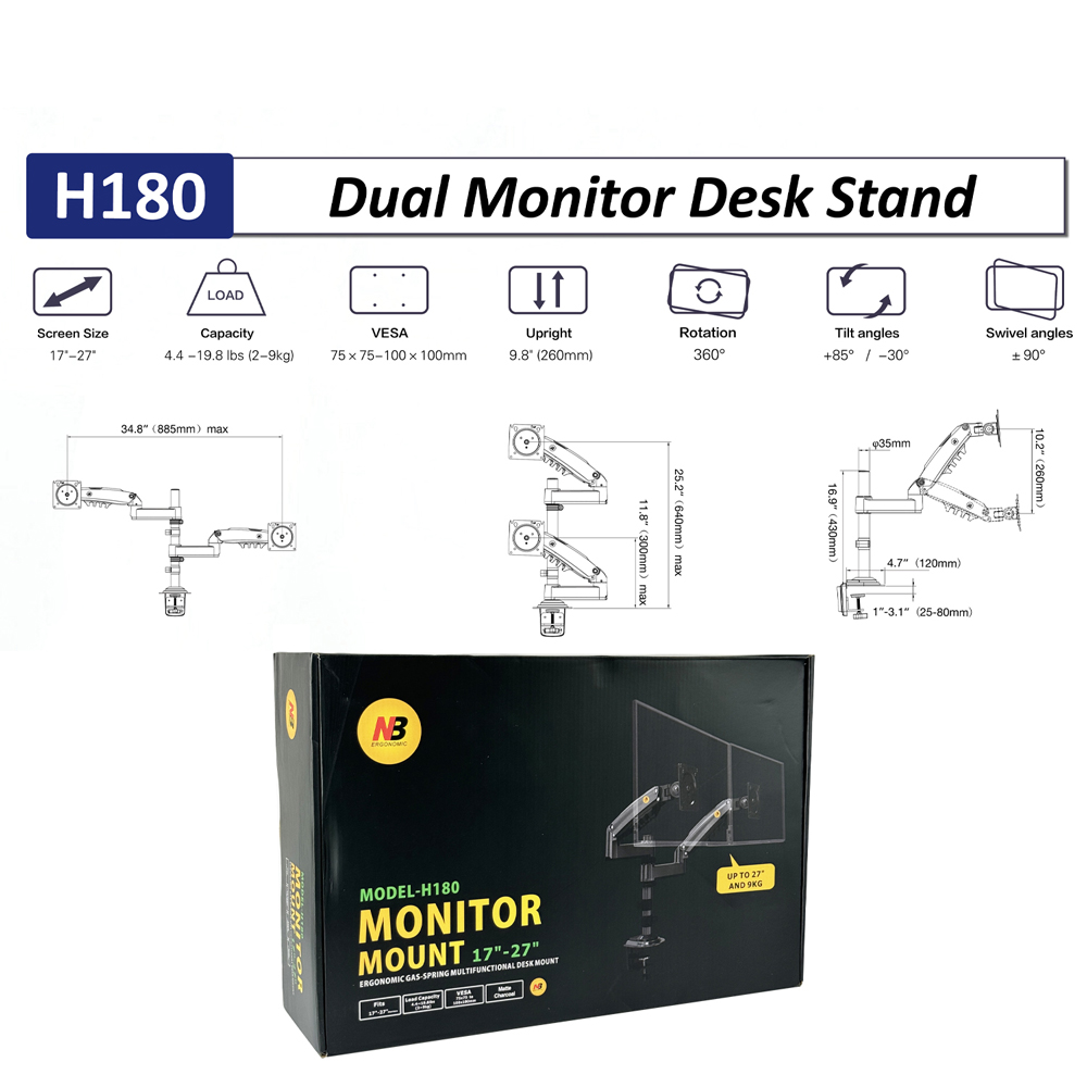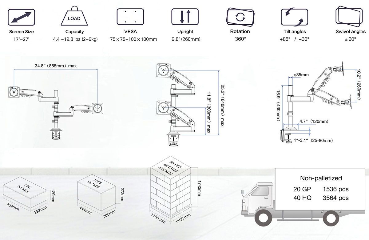 | Tính năng | Giá treo 2 màn hình kẹp bàn |