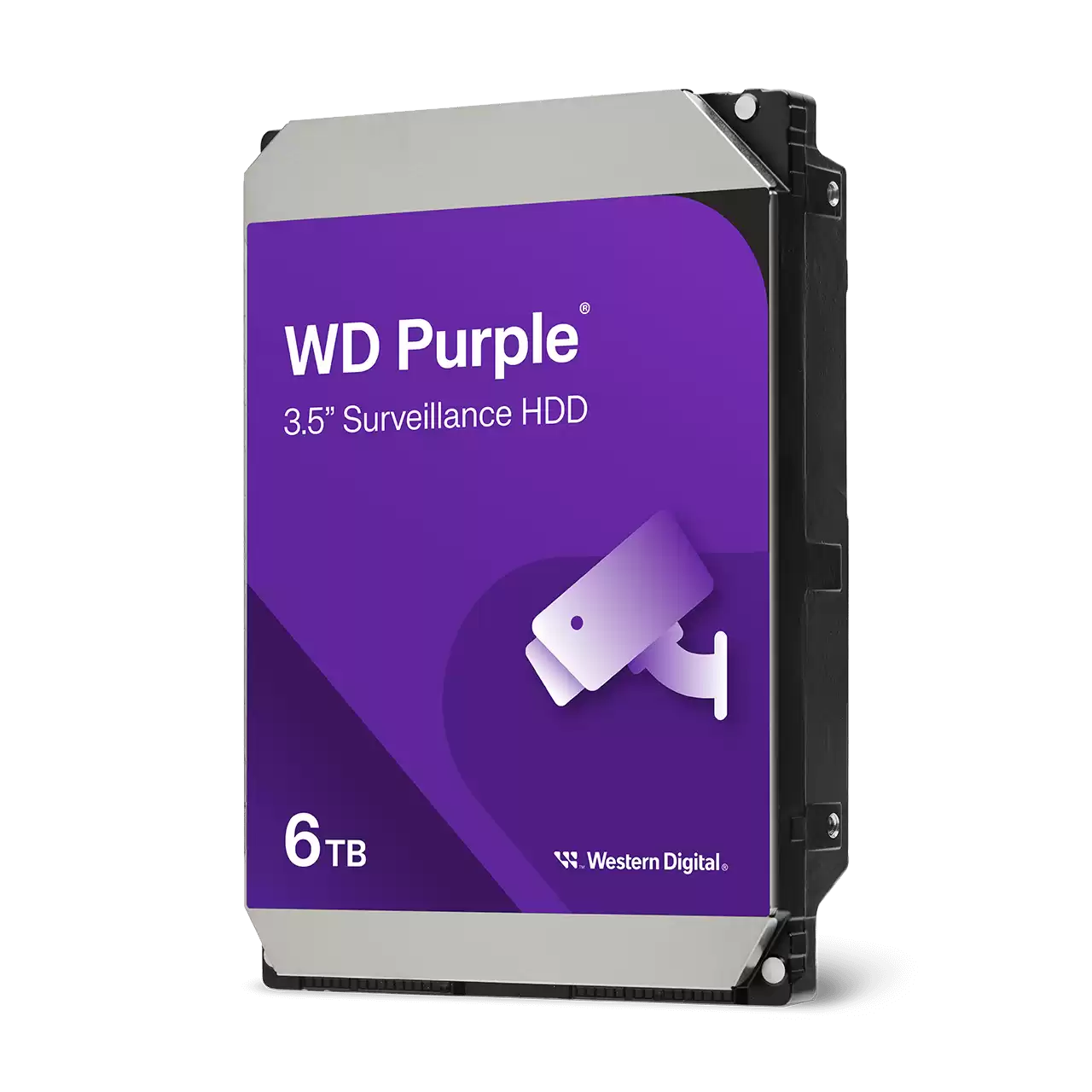 ổ cứng WD Purple 6TB là dòng ổ cứng gắn trong, chuyên dụng cho thiết bị giám sát, đầu ghi camera. Ổ cứng giám sát WD thích hợp sử dụng cho các cá nhân, văn phòng hoặc các doanh nghiệp với hệ thống camera.