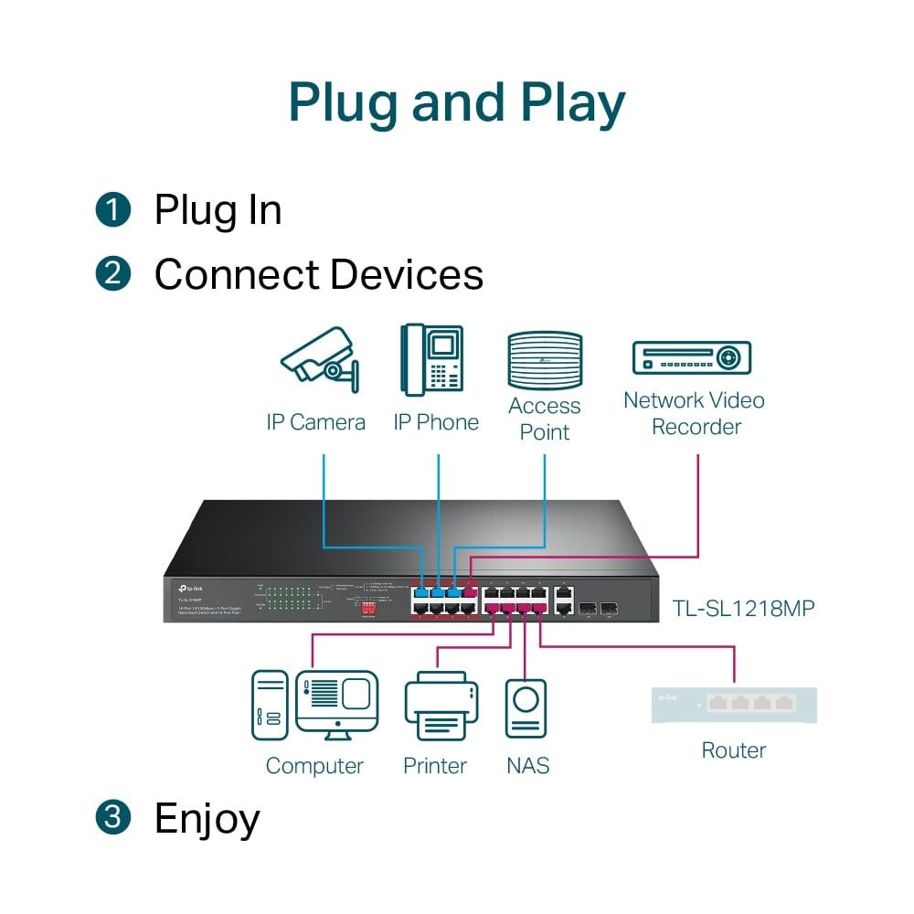 TL-SL1218MP 16-Port 10/100 Mbps + 2-Port Gigabit Rackmount Switch with 16-Port PoE+